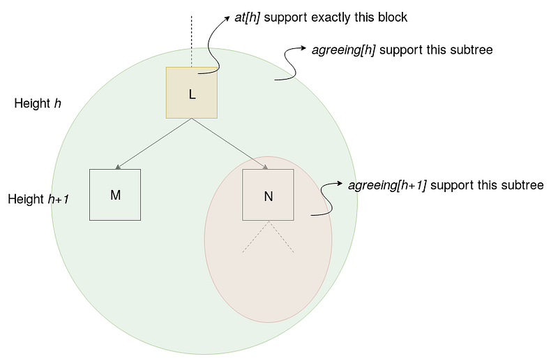 - The support for N’s subtree is agreeing[h+1]