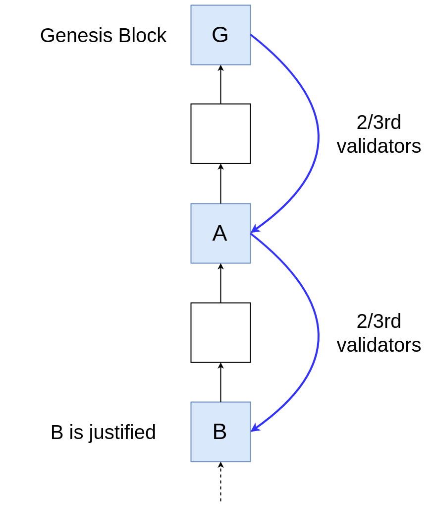 Bto be justified, there must be some sequence of blocks in the increasing order of height[genesis, B_0, B_1, ... , B_n, B], where each block justifies the next block in sequence, i.e., at least 2/3rd validators made the votes(G, B_0),(B_0, B_1), and so on. LetB_mbe the first block in this sequence that hasheight(A) < height(B_m). - Note that if any block in this sequence has the same height as